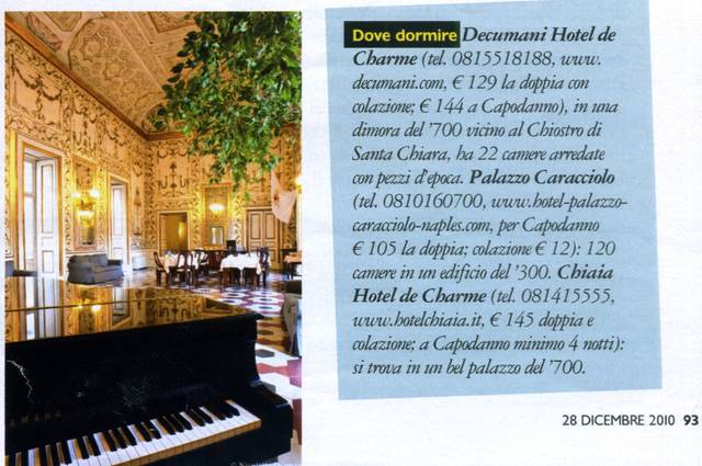 Chiaia Hotel de Charme (tel. 081415555, www.hotelchiaia.it. €145 doppia e colazione; a Capodanno minimo 4 notti): si trova in un bel palazzo del '700.