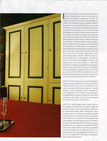 Il brivido del peccato si prova a Napoli nel centralissimo Chiaja Hotel de Charme, a soli 20 metri da piazza del Plebiscito. Inaugurato nel 2001, l'albergo è frutto della ristrutturazione dell'appartamento che il marchese Nicola Lecaldano Sasso La Terza abitò tra la fine dell'Ottocento e gli inizi del Novecento, al primo piano del settecentesco palazzo nobiliare di Via Chiaja, 216. Poi, nel marzo 2003, all'albergo fu accorpato l'appartamento adiacente che ospitò sino al 1958 La Suprema, la più rinomata casa di tolleranza della città, famosa per la bellezza delle ragazze che esercitavano il mestiere più antico del mondo.