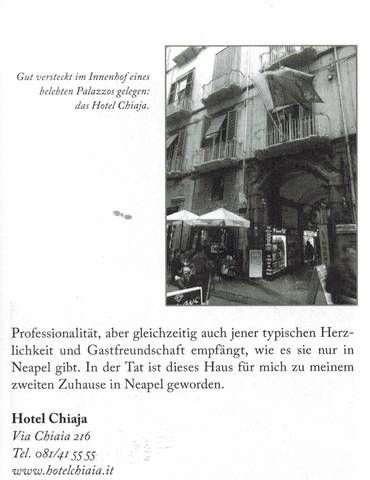 Overnachten Chiaia (F 5) Via Chiaia, 216 tel.081 41 55 55 Fax 081 42 23 44 vww.hotelchiaia.it R2,... [Continua]